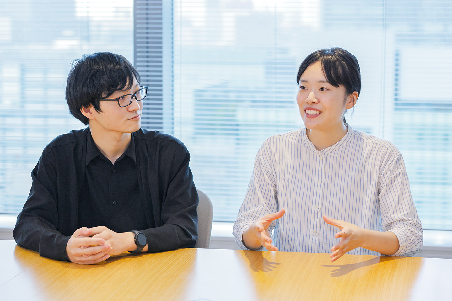 そうそう、同期が多いのはイトーキの特徴ですよね。加えて、先輩社員はみんな温かいし、部署の垣根が低いので、何かわからないことがあれば他部署の人にも気軽に質問できる。また、そういった垣根の低さだけでなく、個の裁量の大きさも感じています。僕たち一人ひとりの“自分らしい働き方”を、温かく受け入れてくれる——そういった雰囲気が全体にあります。