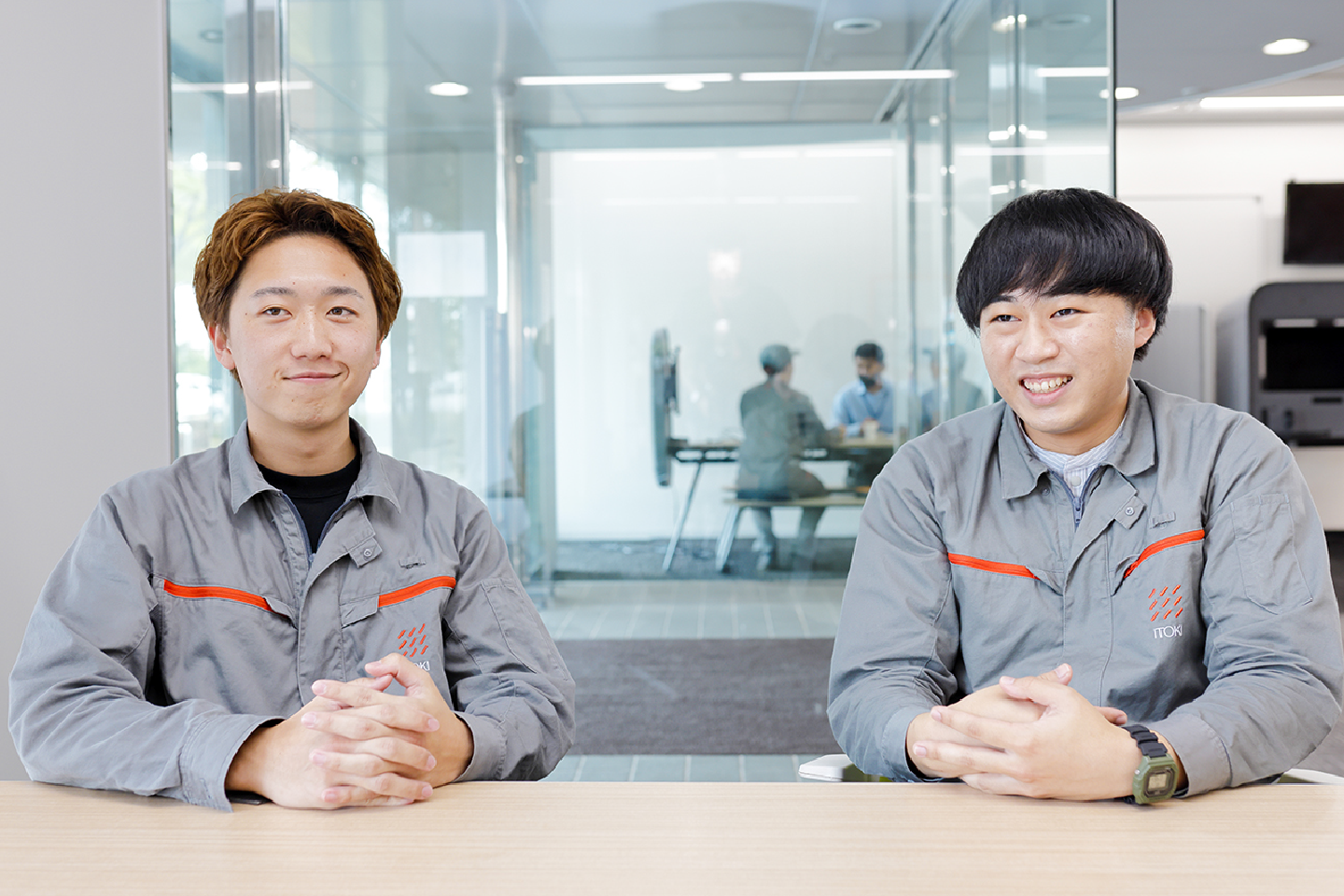 自分は、設計全体を考えて、形にする仕事がしたかったんです。たとえば、自動車や電化製品は開発設計工程が分業されますが、イトーキなら全体を設計できます。あと、二人と同じでやっぱり「人」ですね。面接を受けている最中に「いい会社だな」って直感的に感じて、気持ちが固まりました。