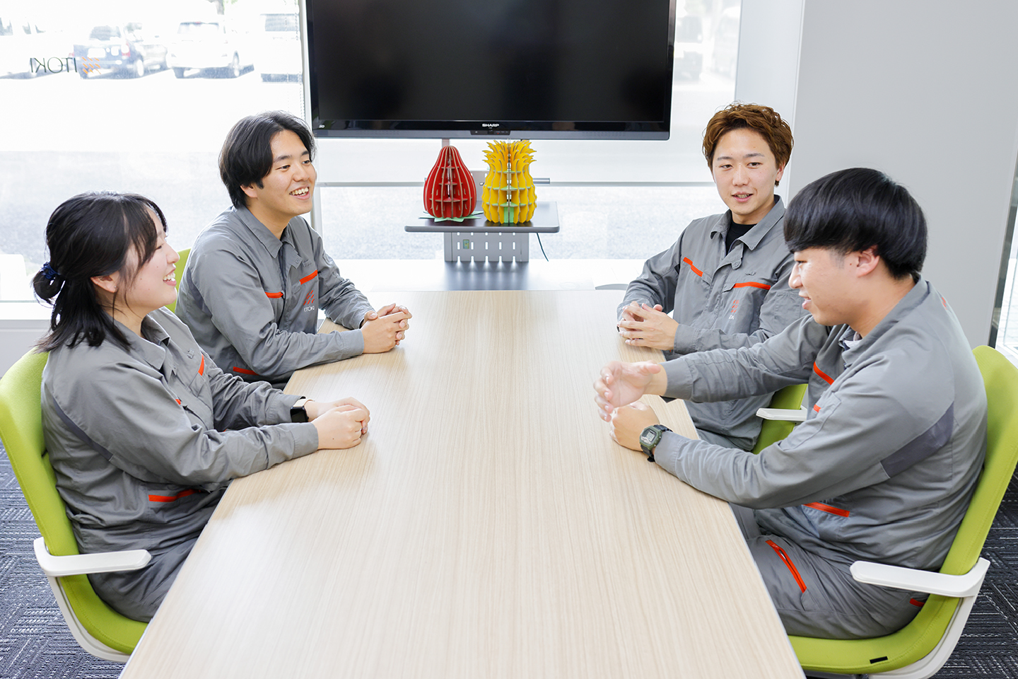 私もそう思います。生産技術の仕事は、設計図の読み解きから新規設備導入、外部業者とのやりとりなど業務の幅が広く、覚えることがいっぱいありますが、専門知識と経験が豊富な頼れる先輩がいるおかげで、毎日楽しく働いています。