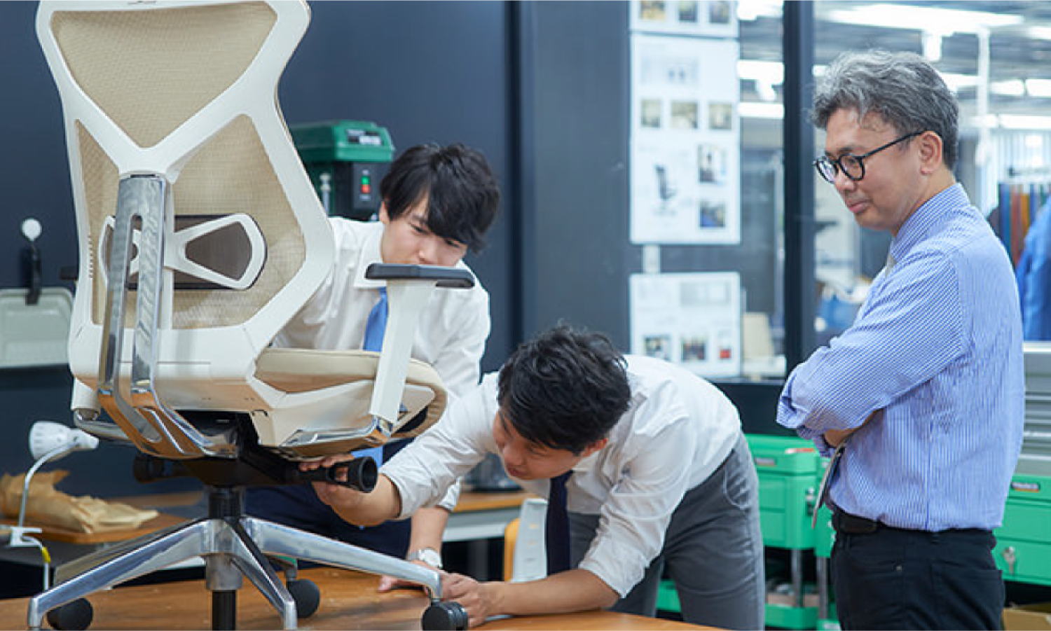 「アイデアを出すことは決して難しいことではないんです。“こんなイスがあったらいい”という発想は、誰もが思い描けます。問題は、どう実現するかです。どんな素材や構造なら生産ラインに載せられるか、コストを抑えられるか、そして、機能を損なわずに多くの人が欲しがるかっこよく美しいものに仕上げられるか。そこが勝負であり、戦いです」。