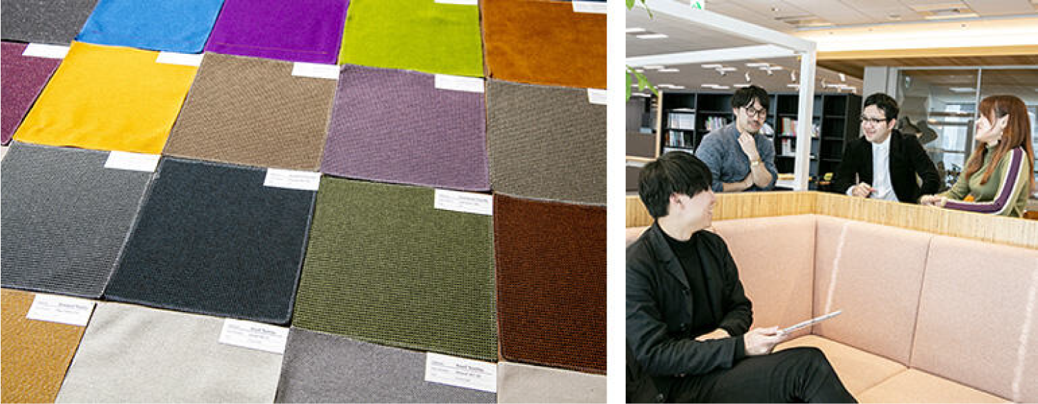 CMFデザイン担当大学でテキスタイルデザインを学び、卒業後は内装材メーカーに勤務。多様化が進むオフィスでの働き方やインテリアに興味を持ち、2018年にイトーキ入社。前職での経験を生かし、CMFデザイン担当として商品開発に取り組んでいる。