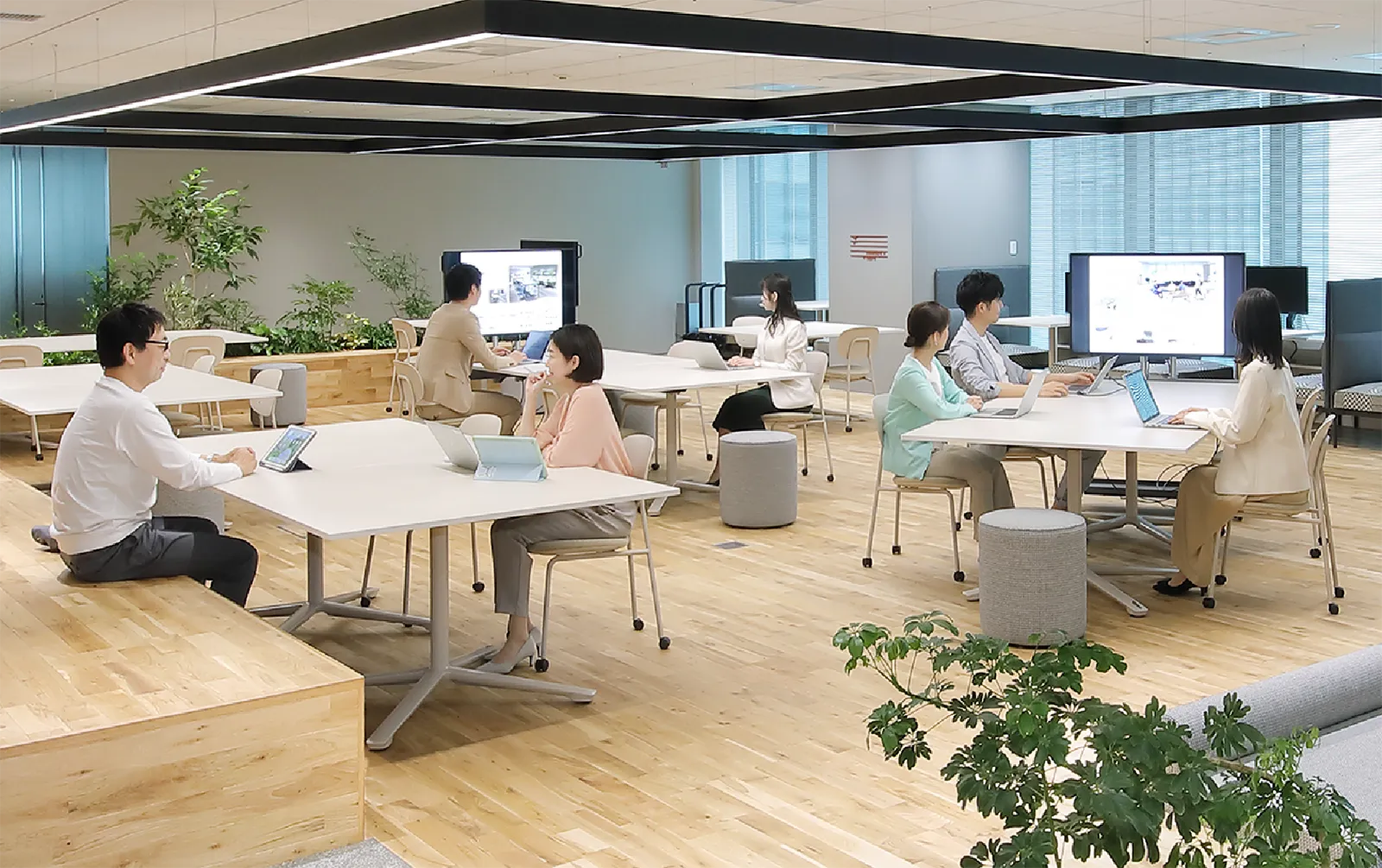 新しい働き方とそれを実現するためのオフィスとしてデザインされ、社員自ら実践しながらお客様にご提案する最前線の空間です。