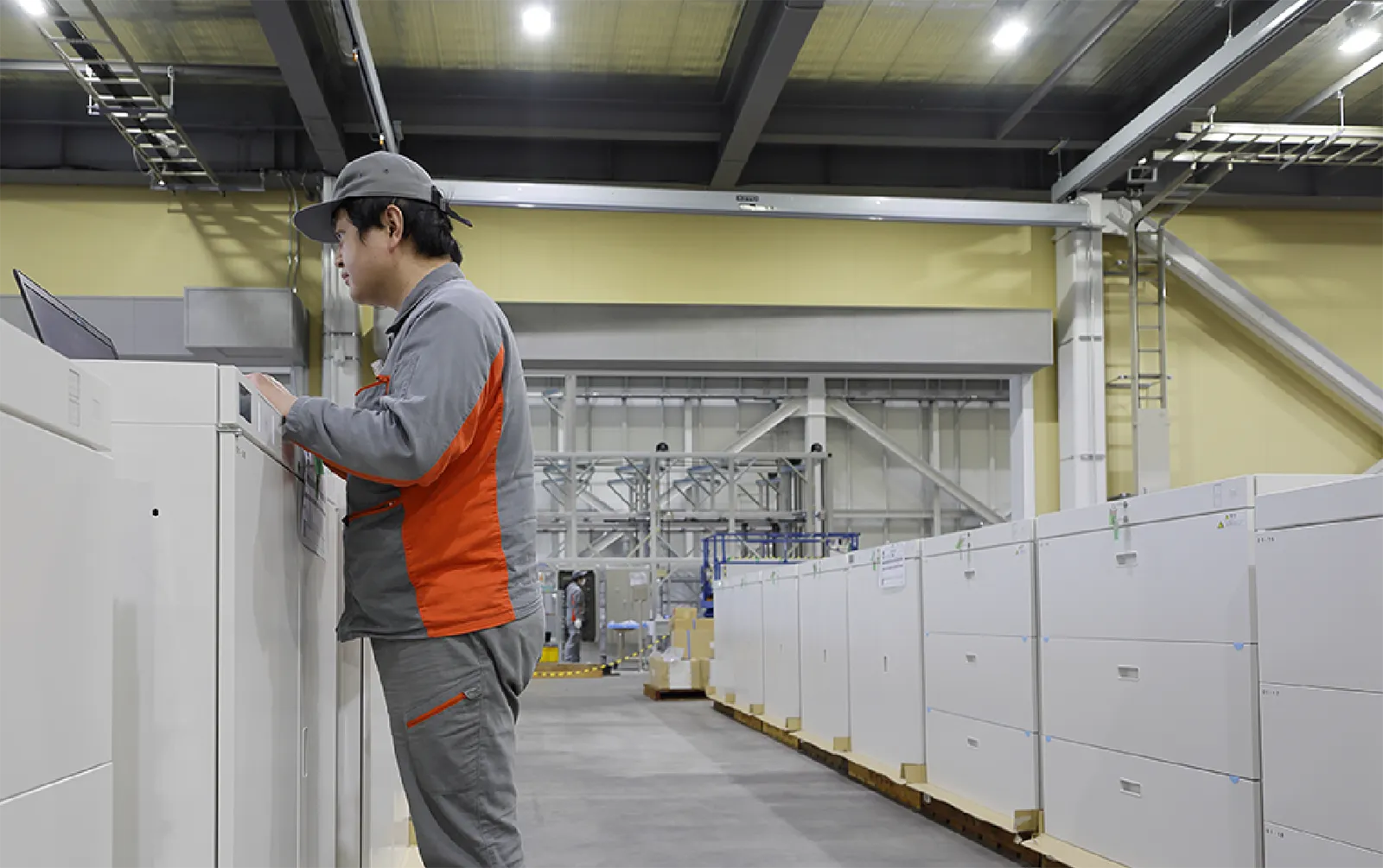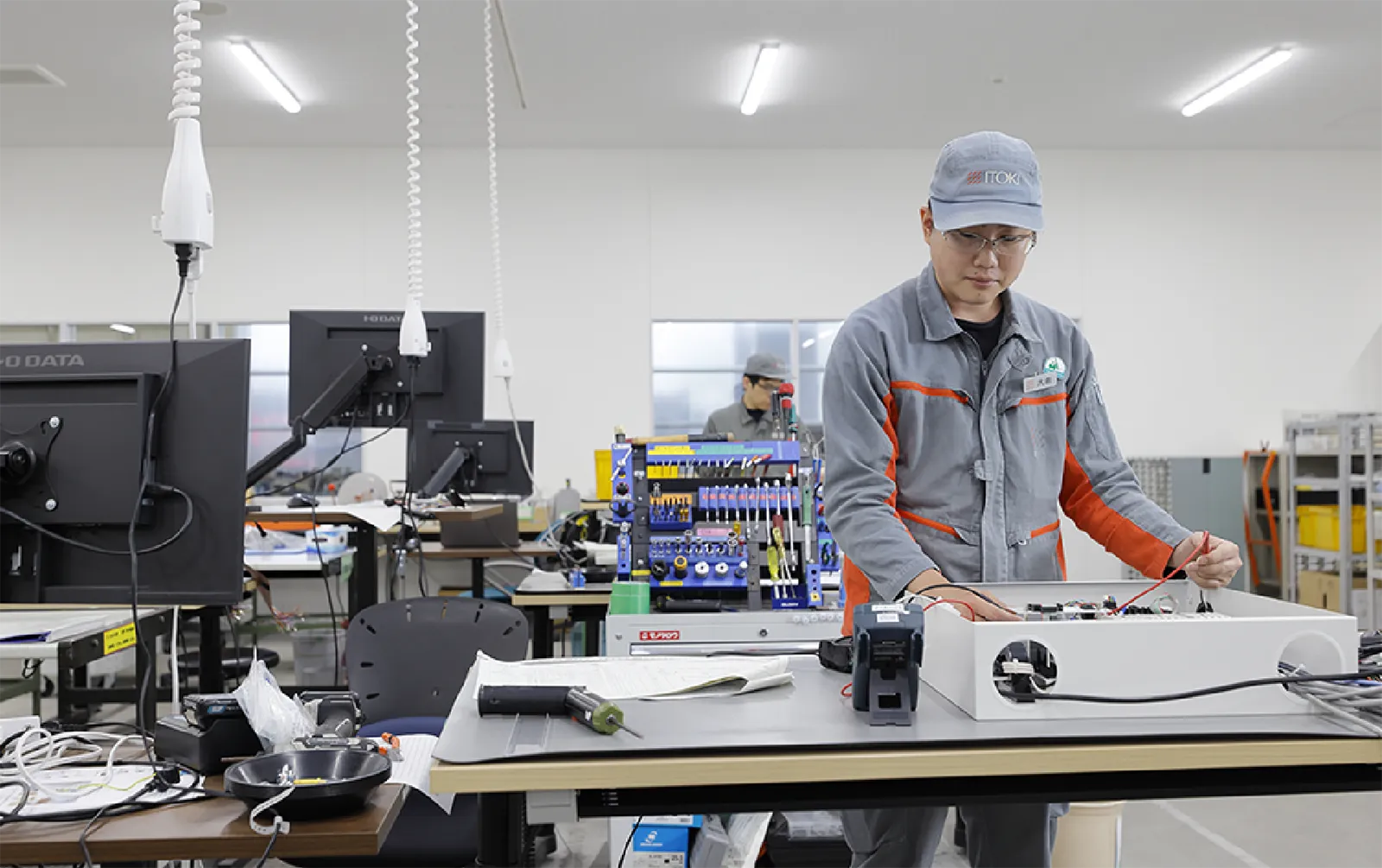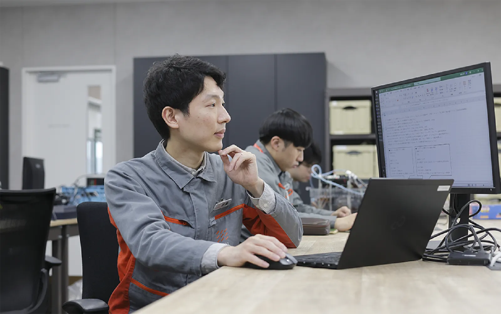 作業手順書などをモニターで閲覧するなど、効率よく働けるよう様々なシステムを導入しています。