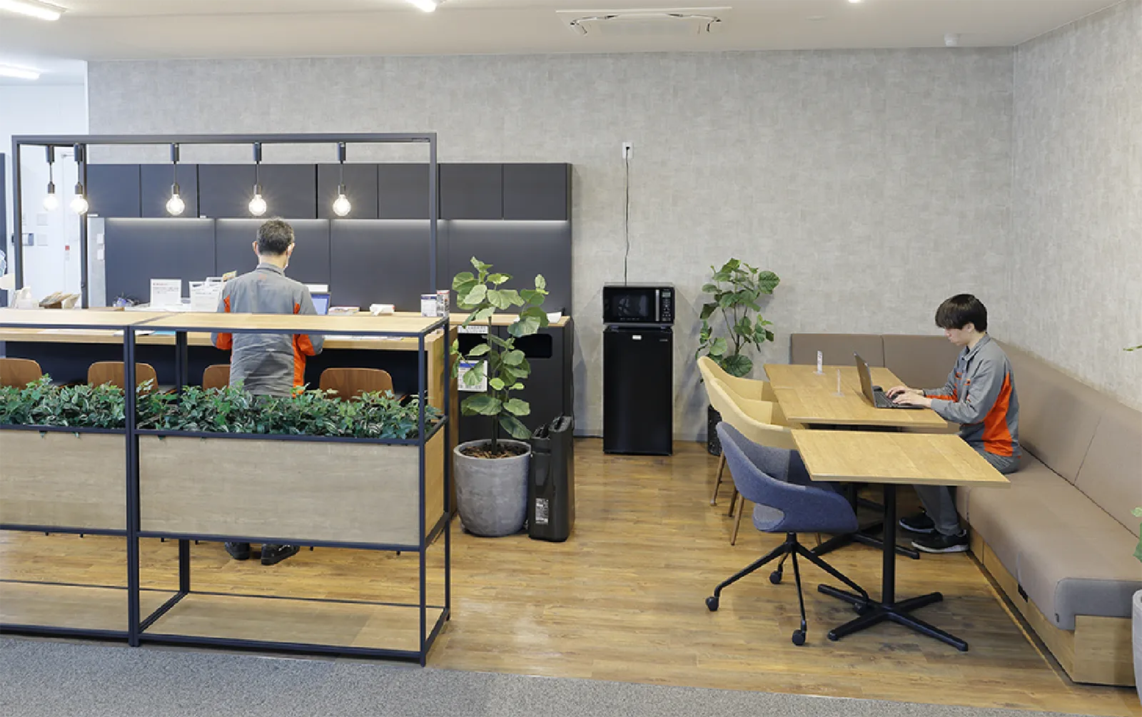 common furniture(コモンファニチャー)を使用し、作業しやすい環境です。※common furniture(コモンファニチャー):「 普遍であること。自由であること。」をコンセプトとした、自由で創造的な空間を実現する家具からパーティションまでラインアップするイトーキのブランド。